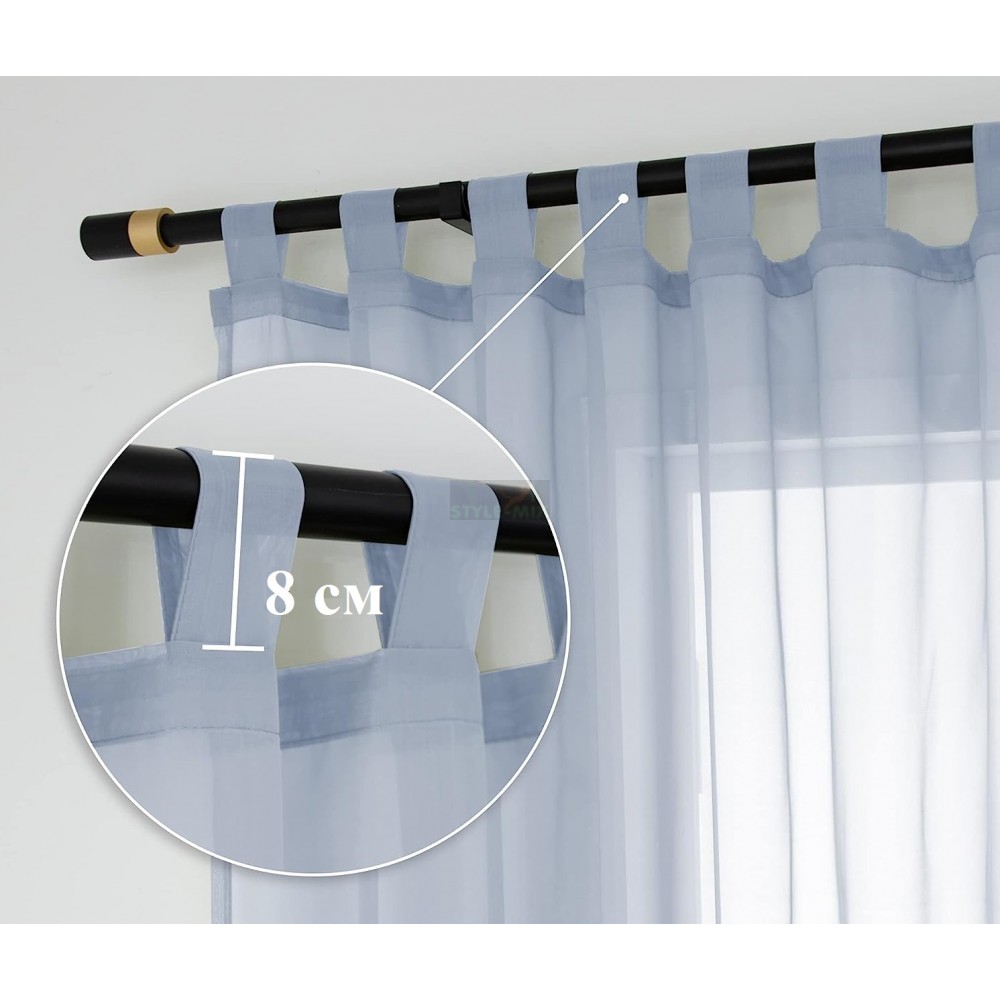 В верхней части полотна есть, так называемые, декоративные петли, при помощи которых штора вывешивается на карниз.Шторы на петлях пользуются заслуженной популярностью в оформлении современных интерьеров.