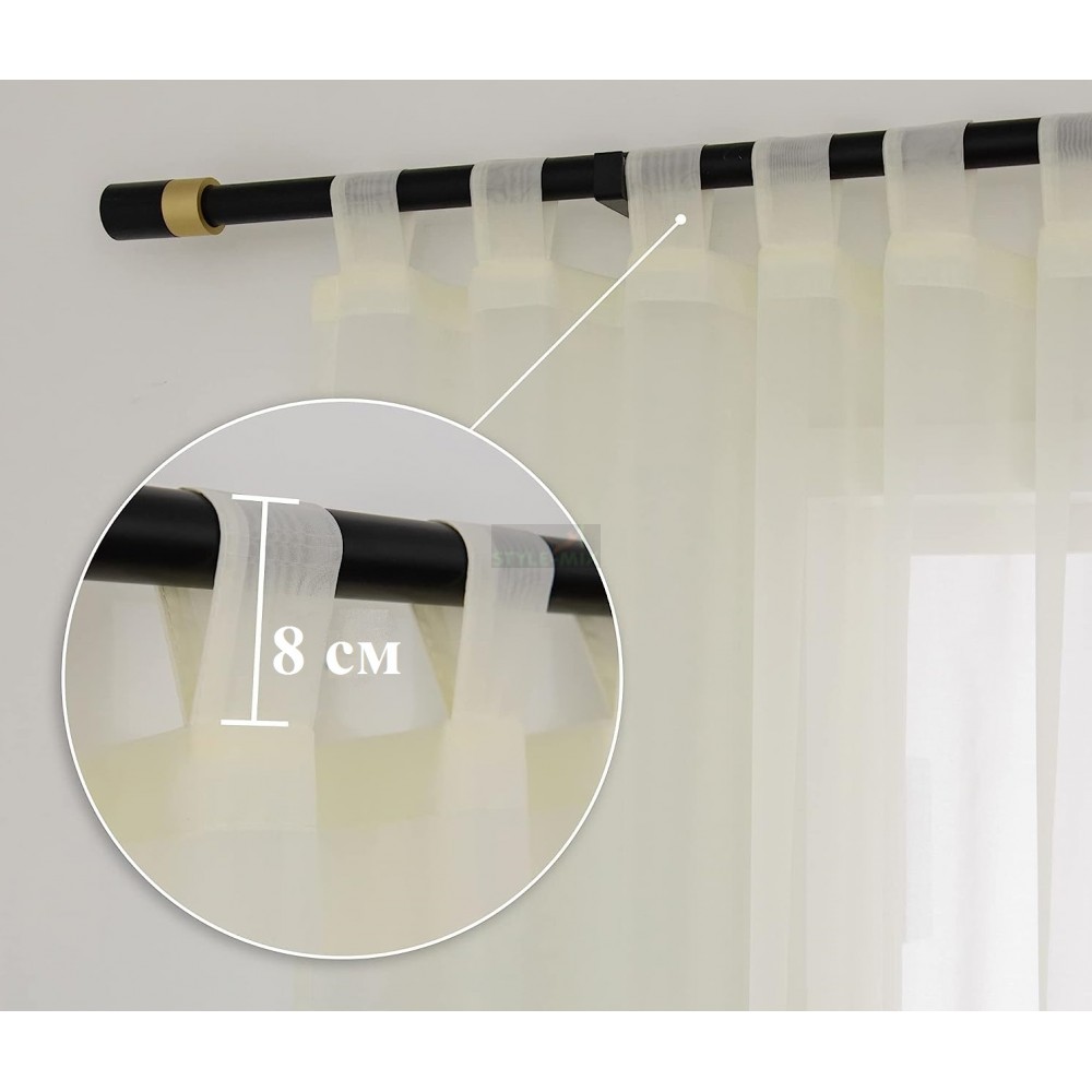 В верхней части полотна есть, так называемые, декоративные петли, при помощи которых штора вывешивается на карниз.Шторы на петлях пользуются заслуженной популярностью в оформлении современных интерьеров.