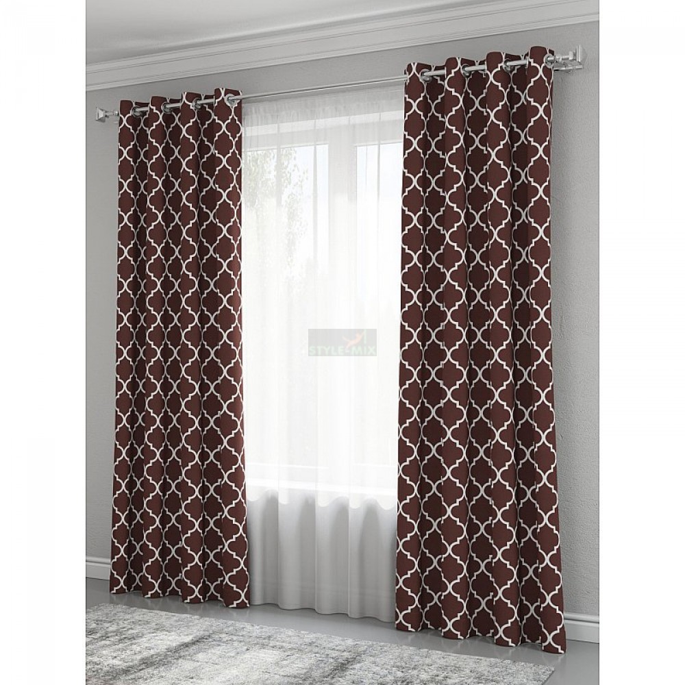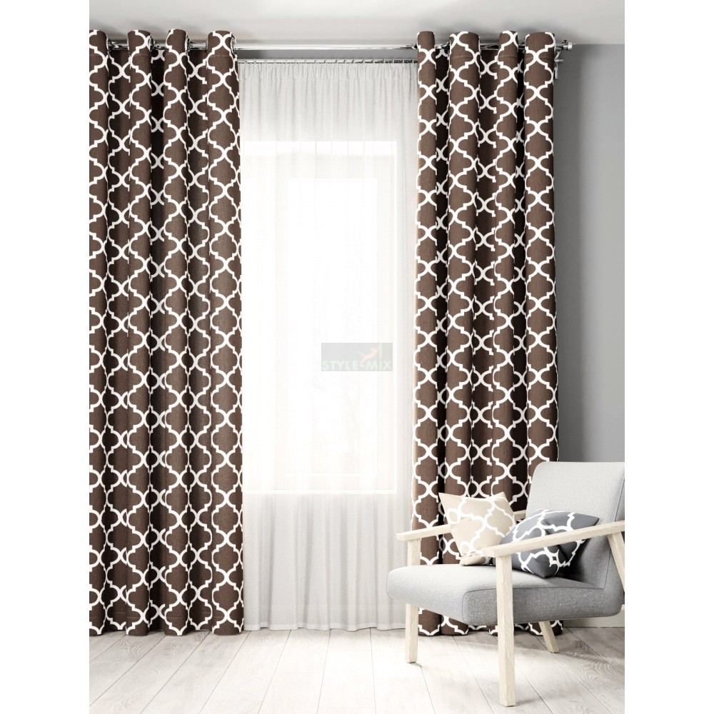 Комплект штор выполнен из плотной ткани с эффектным крупным узором.