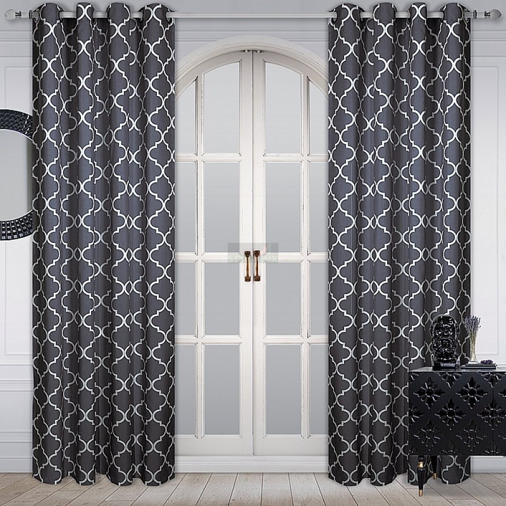 Комплект штор выполнен из плотной ткани с эффектным крупным узором.