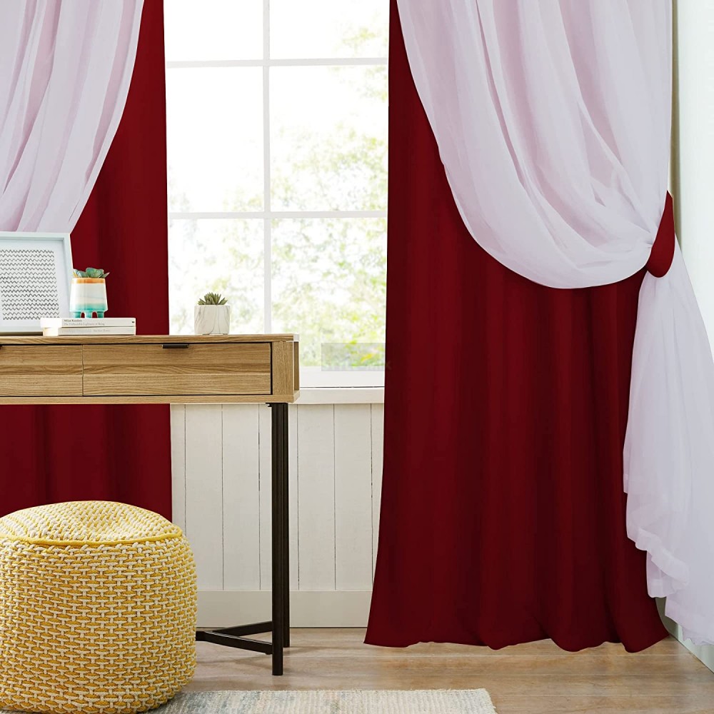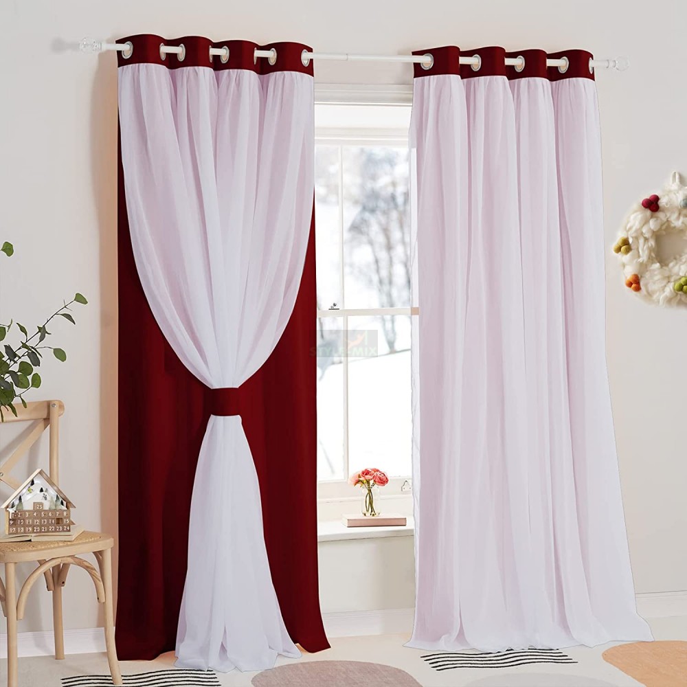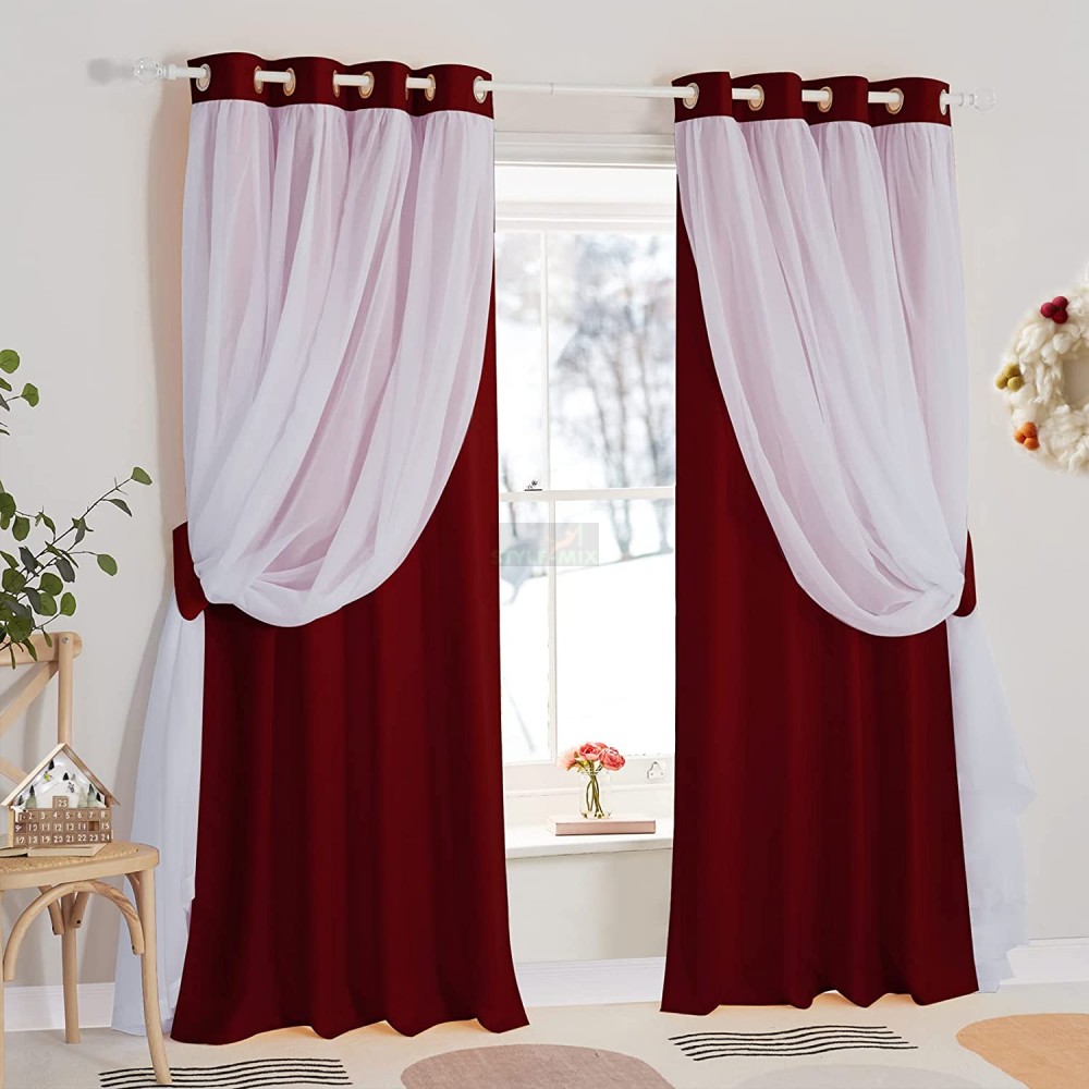 Нижняя часть шторы непрозрачная ткань - имитация льна, поверх шторы пришита легкая вуаль в складку.