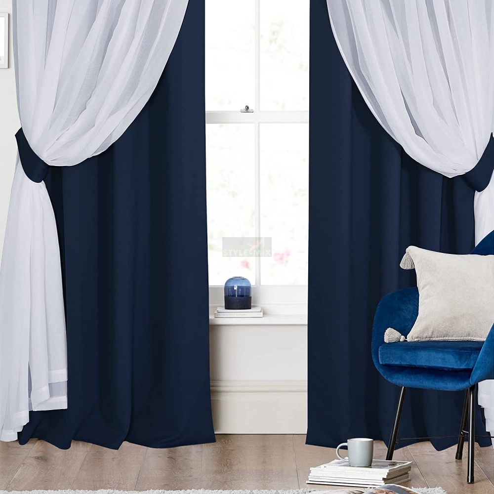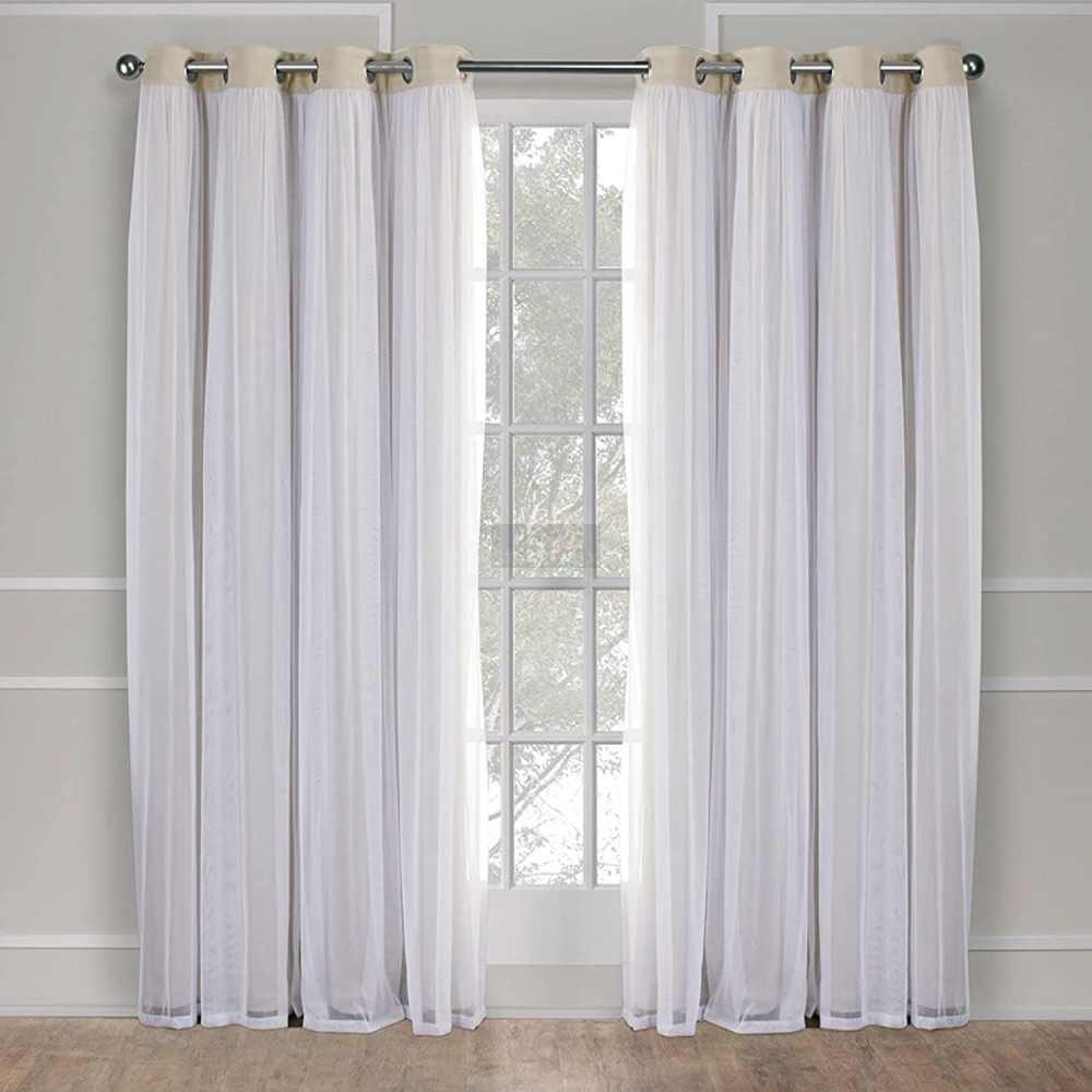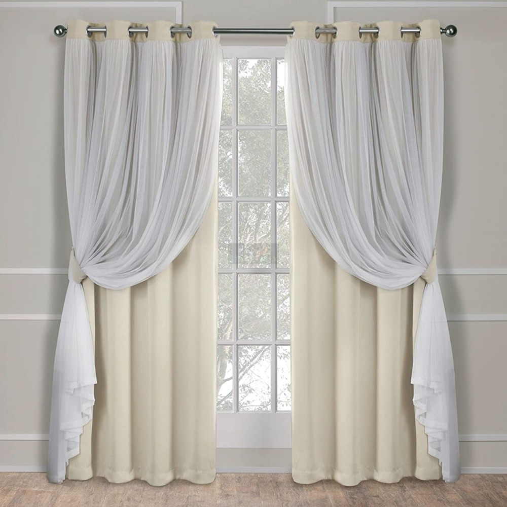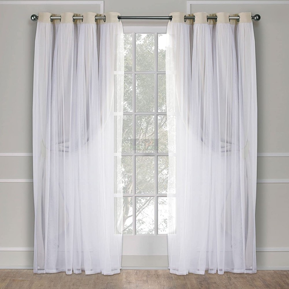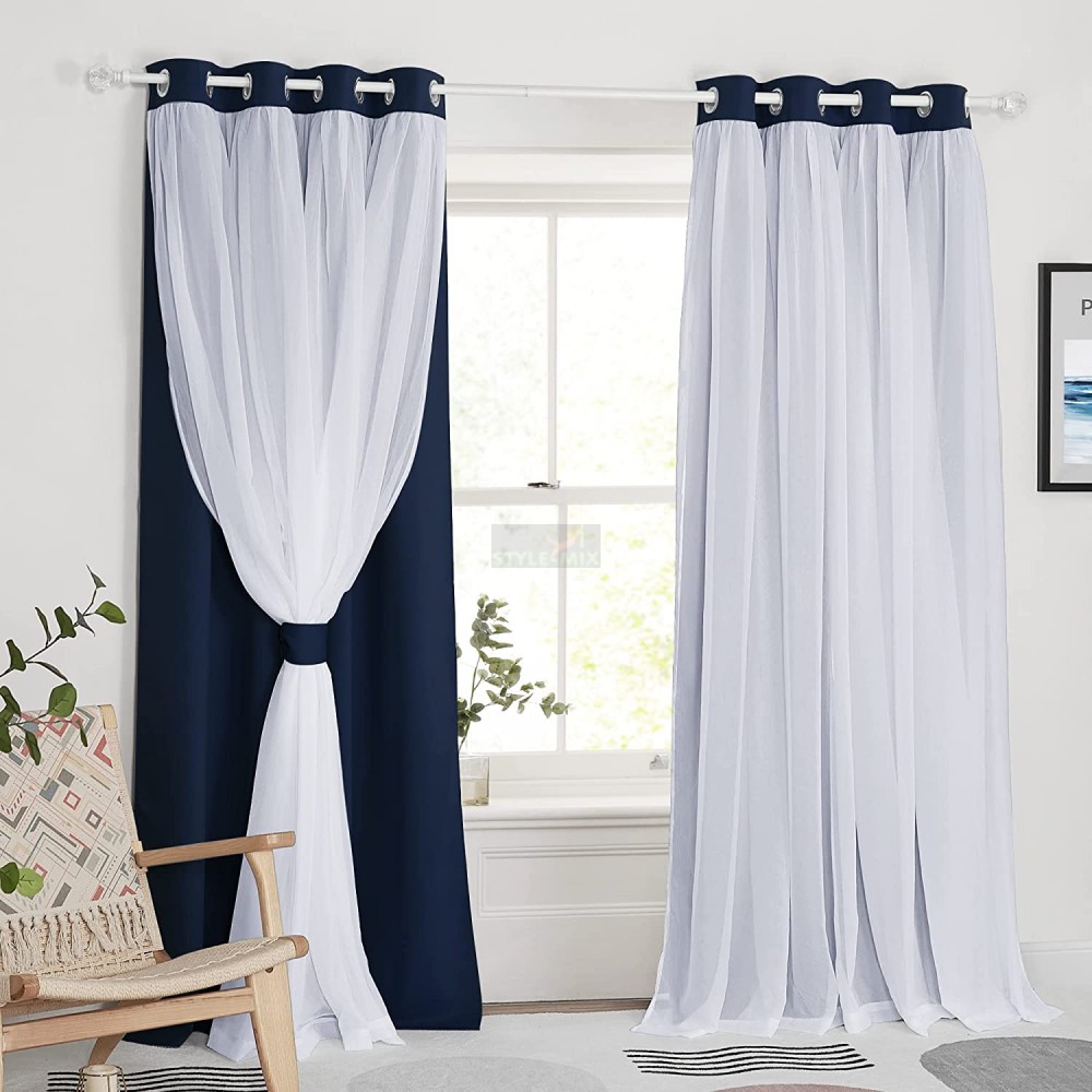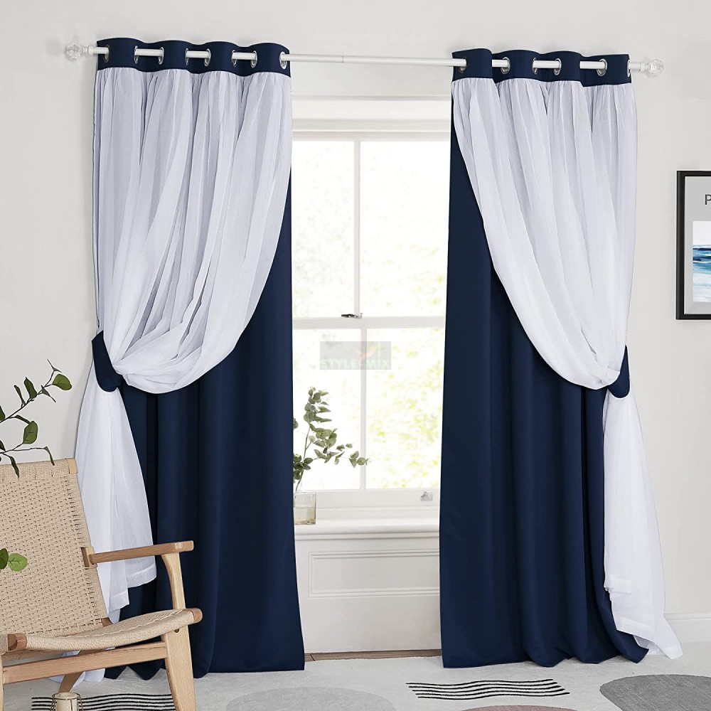 Нижняя часть шторы непрозрачная ткань - имитация льна, поверх шторы пришита легкая вуаль в складку.