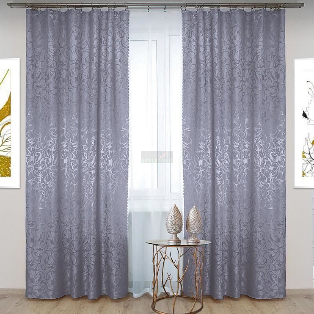 В соответствии с названием, комплект представляет собой ансамбль из классической гардинной шторы и белоснежного вуалевого тюля. Штора, благодаря своей плотности, хорошо защищает комнату от назойливого света автомобильных фар и ярких солнечных лучей. Вместе с тем, она декорирована тиснёным растительным орнаментом, что способно превратить её в достойное украшение Вашей гостиной.