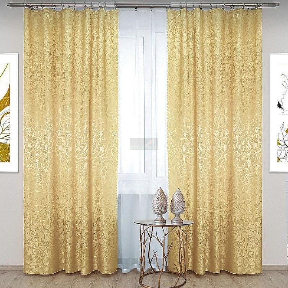 В соответствии с названием, комплект представляет собой ансамбль из классической гардинной шторы и белоснежного вуалевого тюля. Штора, благодаря своей плотности, хорошо защищает комнату от назойливого света автомобильных фар и ярких солнечных лучей. Вместе с тем, она декорирована тиснёным растительным орнаментом, что способно превратить её в достойное украшение Вашей гостиной.