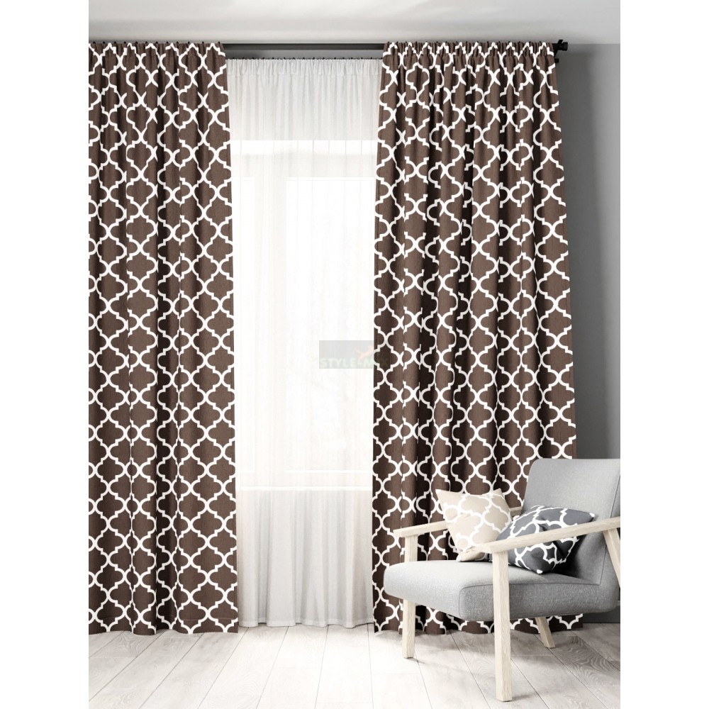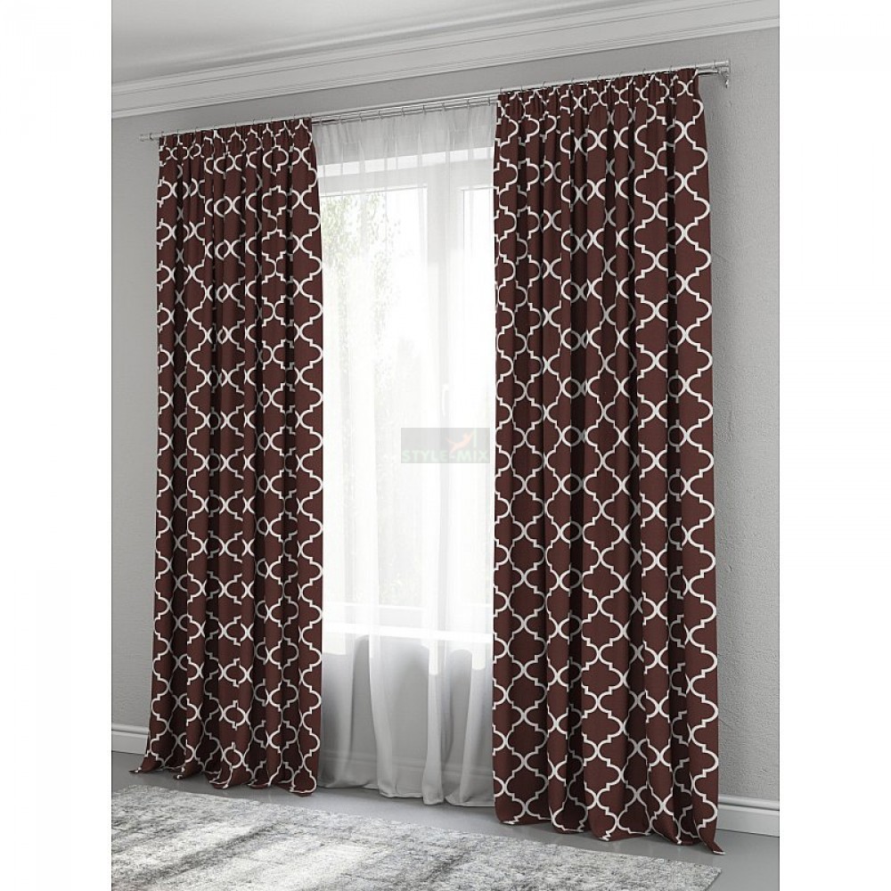 Комплект штор выполнен из плотной ткани с эффектным крупным узором.