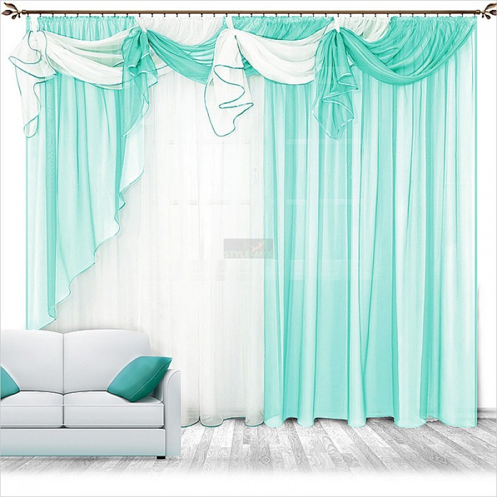 Штора «Бриз» - это два независимых контрастных полотна вуали и необычный ламбрекен, чей дизайн придётся по душе очень многим. Он, и вправду, ассоциируется с дуновением свежего морского ветра.