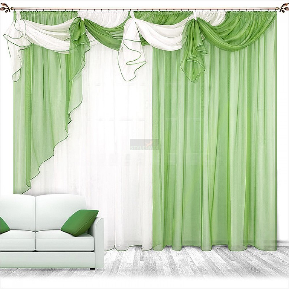 Штора «Бриз» - это два независимых контрастных полотна вуали и необычный ламбрекен, чей дизайн придётся по душе очень многим. Он, и вправду, ассоциируется с дуновением свежего морского ветра.