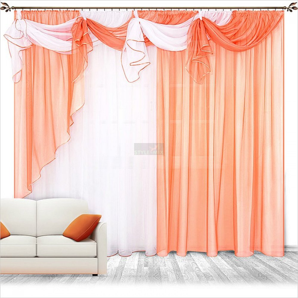 Штора «Бриз» - это два независимых контрастных полотна вуали и необычный ламбрекен, чей дизайн придётся по душе очень многим. Он, и вправду, ассоциируется с дуновением свежего морского ветра.