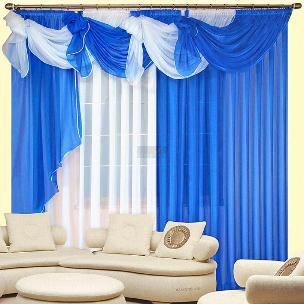 Штора «Бриз» - это два независимых контрастных полотна вуали и необычный ламбрекен, чей дизайн придётся по душе очень многим. Он, и вправду, ассоциируется с дуновением свежего морского ветра.