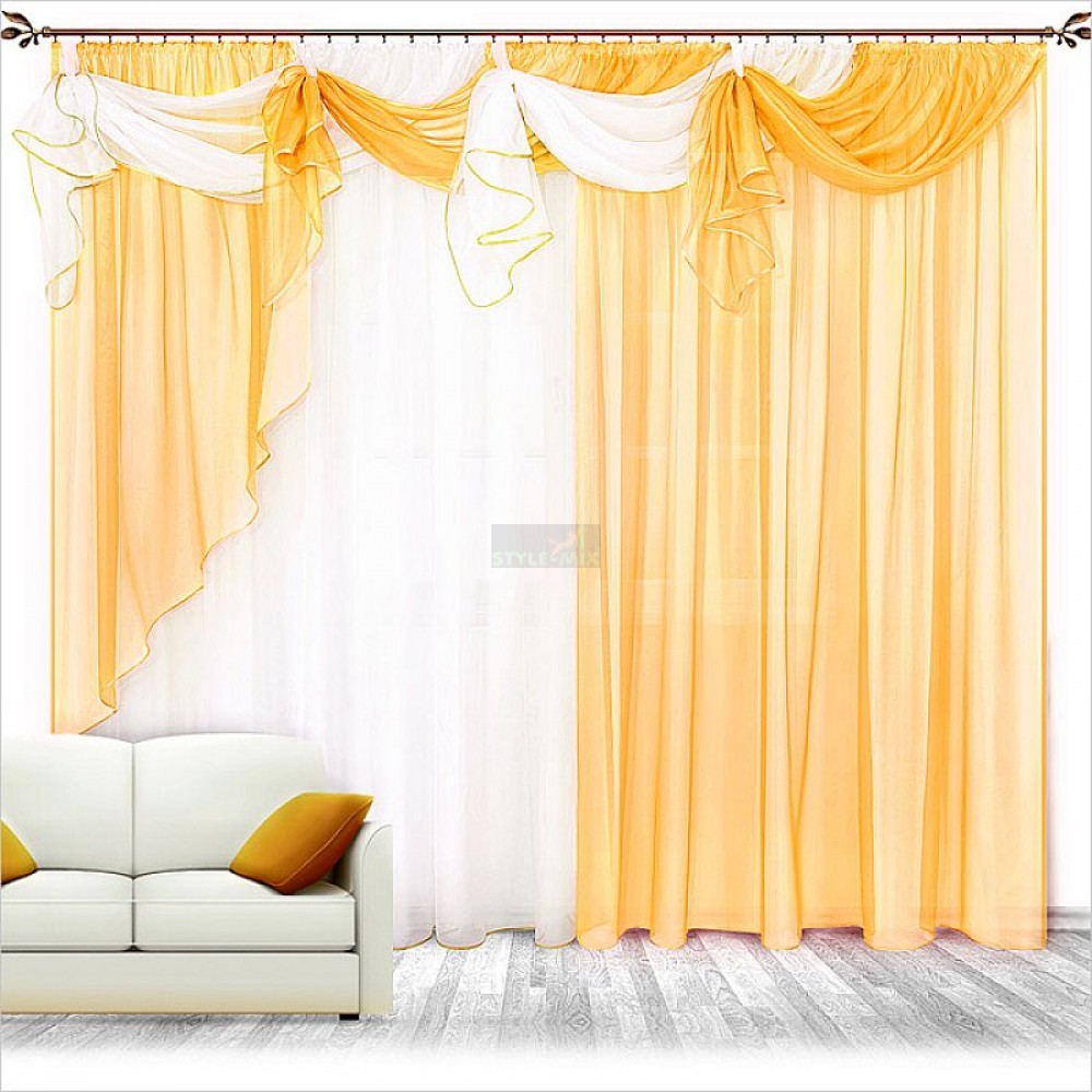 Штора «Бриз» - это два независимых контрастных полотна вуали и необычный ламбрекен, чей дизайн придётся по душе очень многим. Он, и вправду, ассоциируется с дуновением свежего морского ветра.