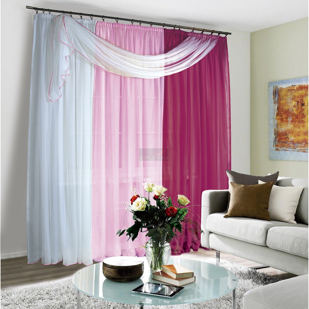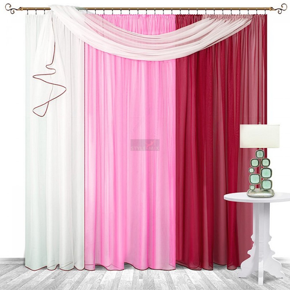 Штора-тюль «Корнелия» выполнена из пришитой к одной шторной ленте вуали трёх различных тонов. Благодаря их сочетанию, а также полупрозрачности ткани, помещение, окно которого украшено представленной шторой, будет казаться более просторным. Комплект дополнен светлым шарфиком. Если его свободный конец перекинуть через карниз, можно создать таким образом подобие ламбрекена.
