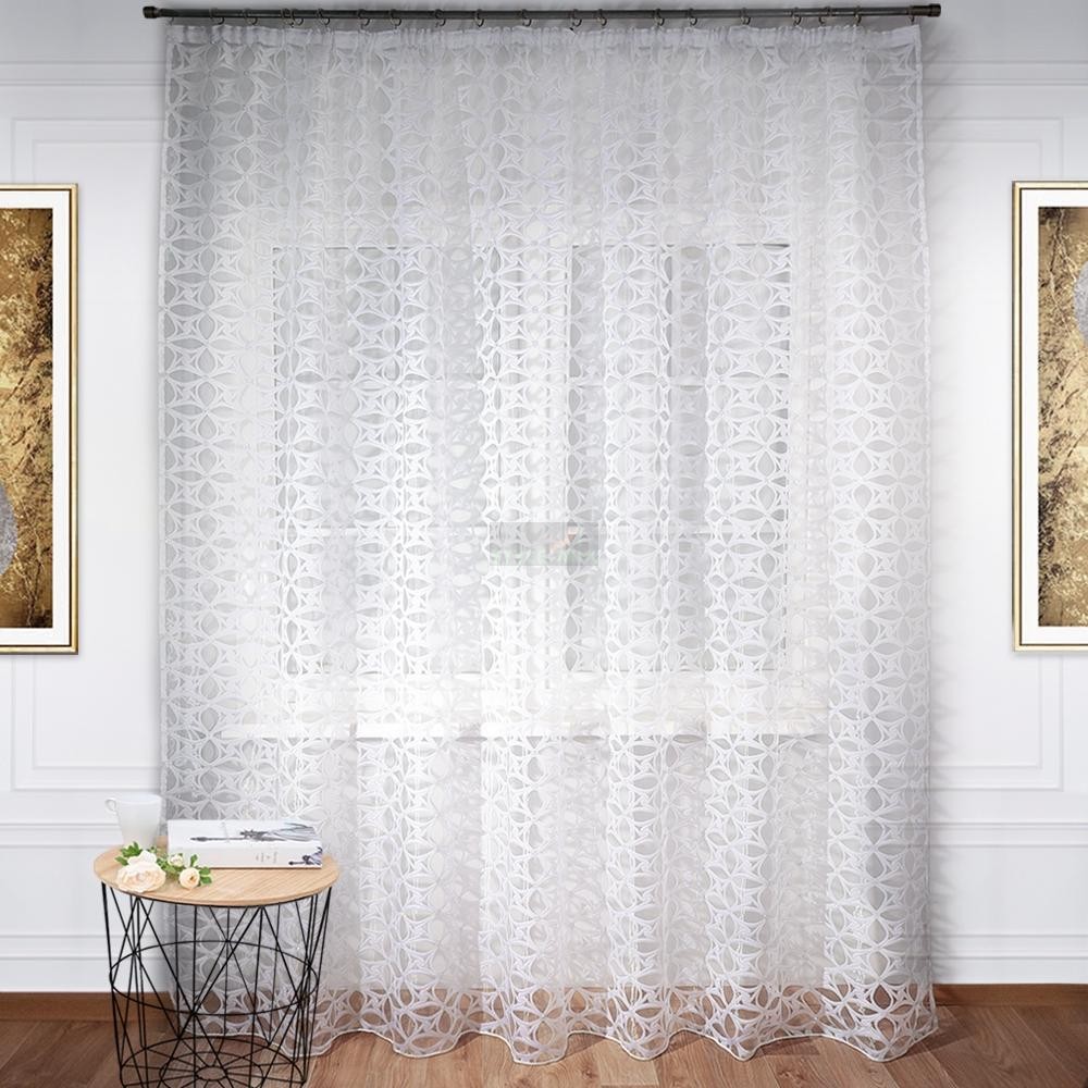 Тюль из органзы подойдет для зала, гостиной, детской или кухни. По низу тюля утяжелитель, поэтому полотно красиво драпируется в складки. По верхнему краю тюля пришита шторная лента, с ее помощью, затянув узелки от кордовых нитей с обеих сторон и стянув их до нужного размера, можно красиво присобрать тюль.