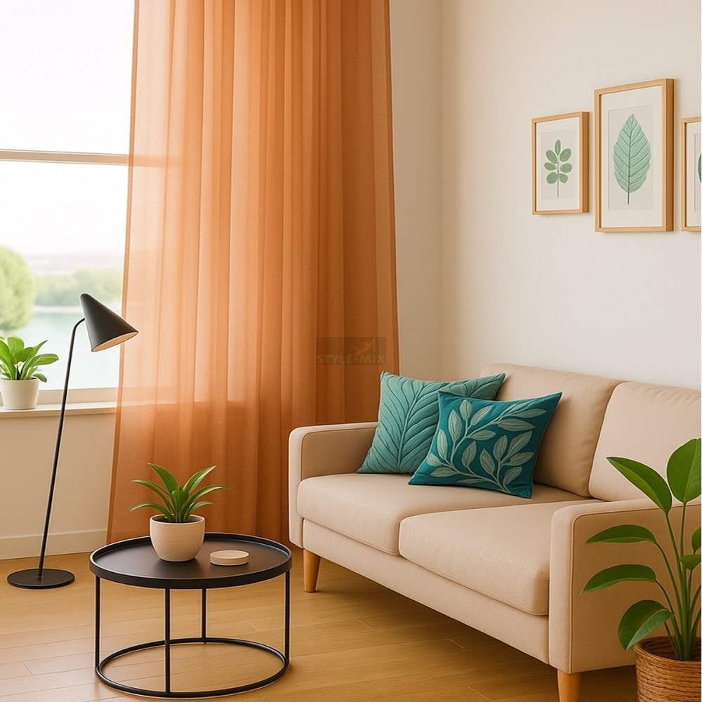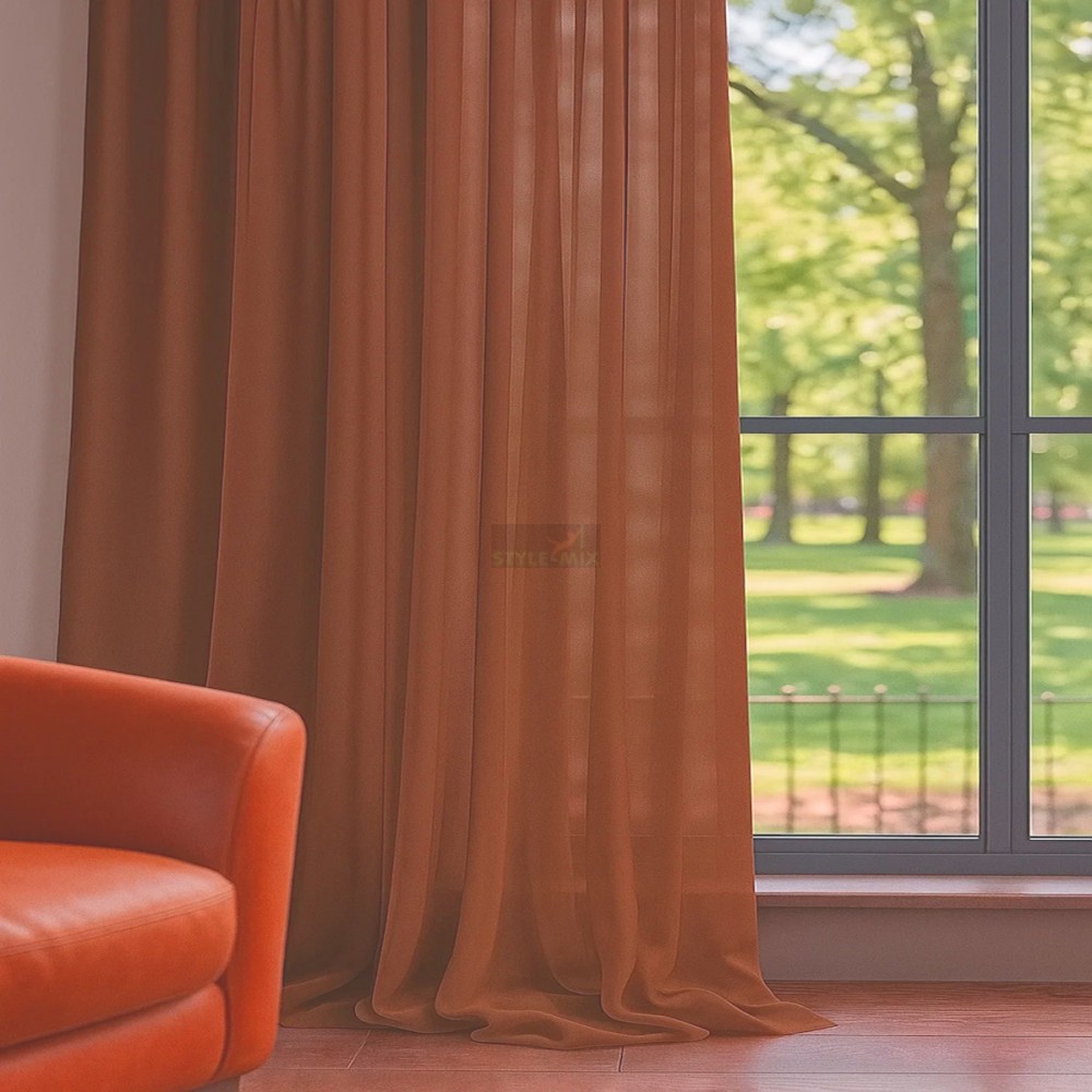Штора из легкой вуали, при сборке шторной ленты образует мягкие складки.