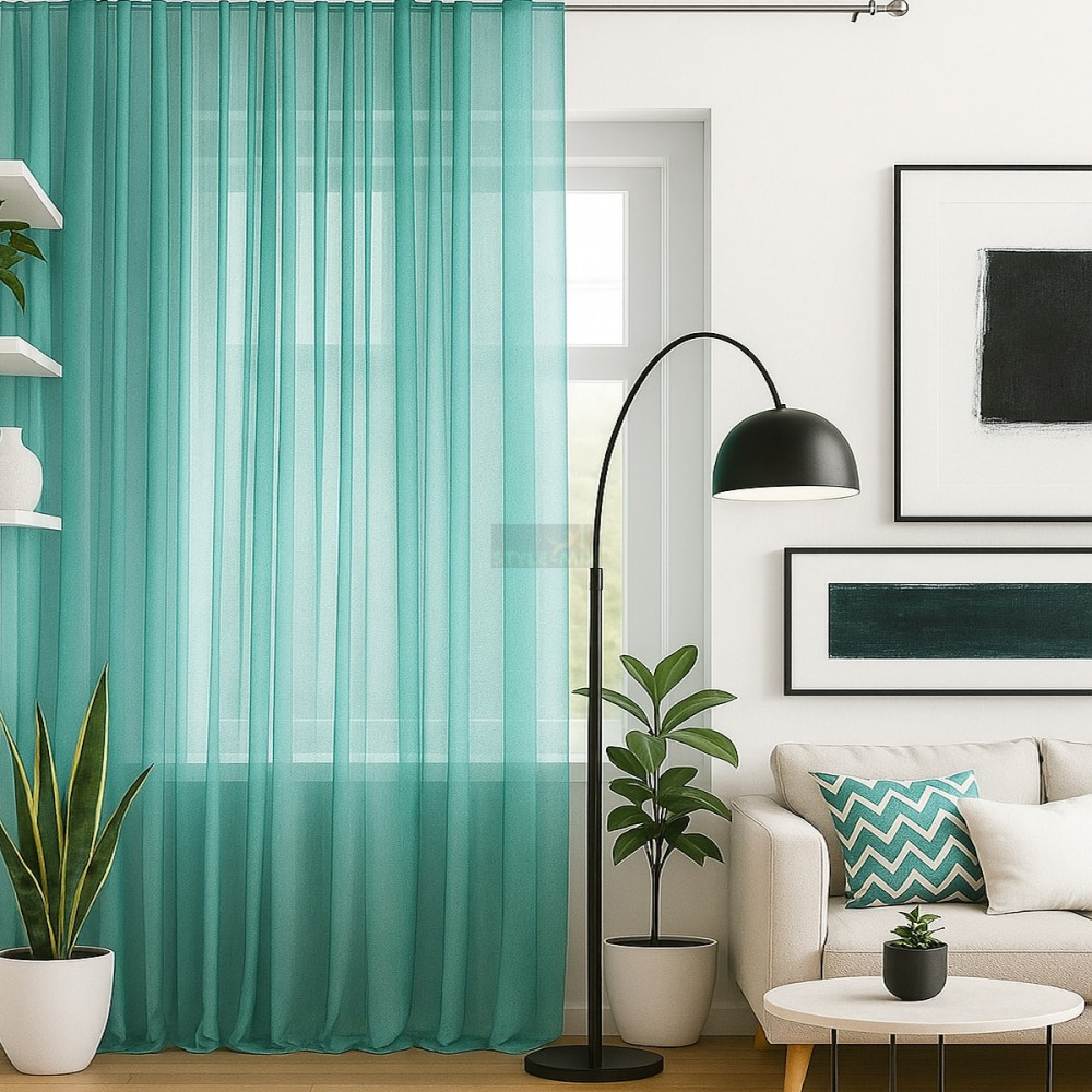 Штора из легкой вуали, при сборке шторной ленты образует мягкие складки.