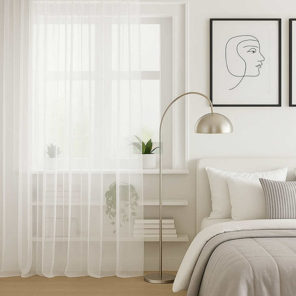 Штора из легкой вуали, при сборке шторной ленты образует мягкие складки.