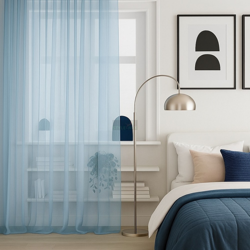 Штора из легкой вуали, при сборке шторной ленты образует мягкие складки.