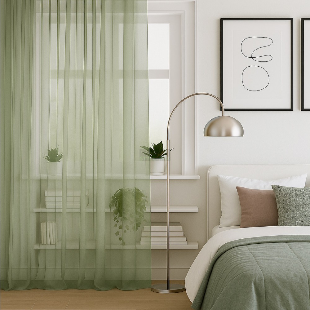 Штора из легкой вуали, при сборке шторной ленты образует мягкие складки.