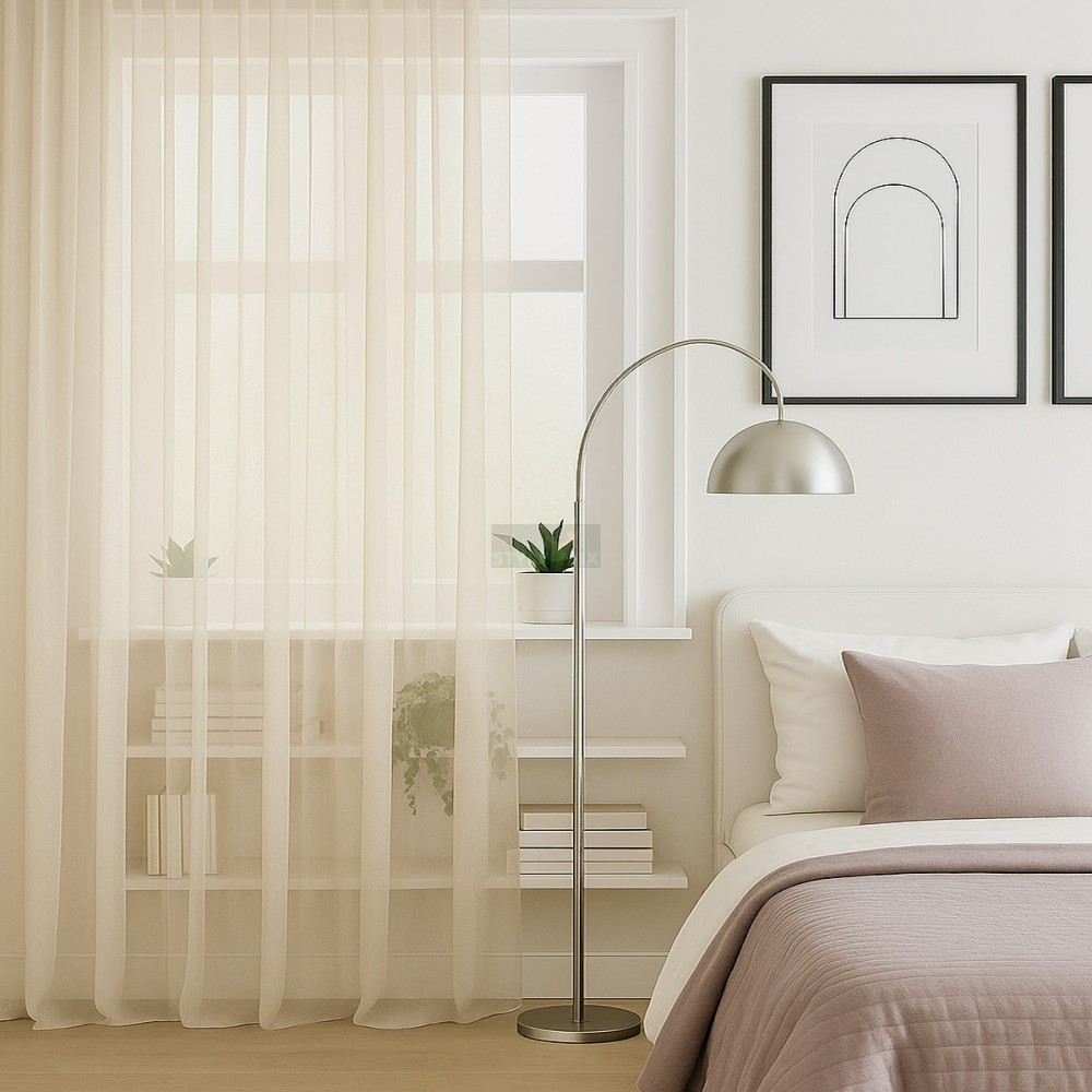 Штора из легкой вуали, при сборке шторной ленты образует мягкие складки.
